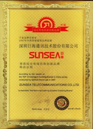 2007年11月29日~30日,VSPORTS体育官网公司智能综合布线受邀前往上海光大会展中心酒店,参加由千家网筹办的“2007年第八届中国国际建筑智能化峰会暨颁奖典礼”,获得了“布线民族创新品牌”特别奖项。